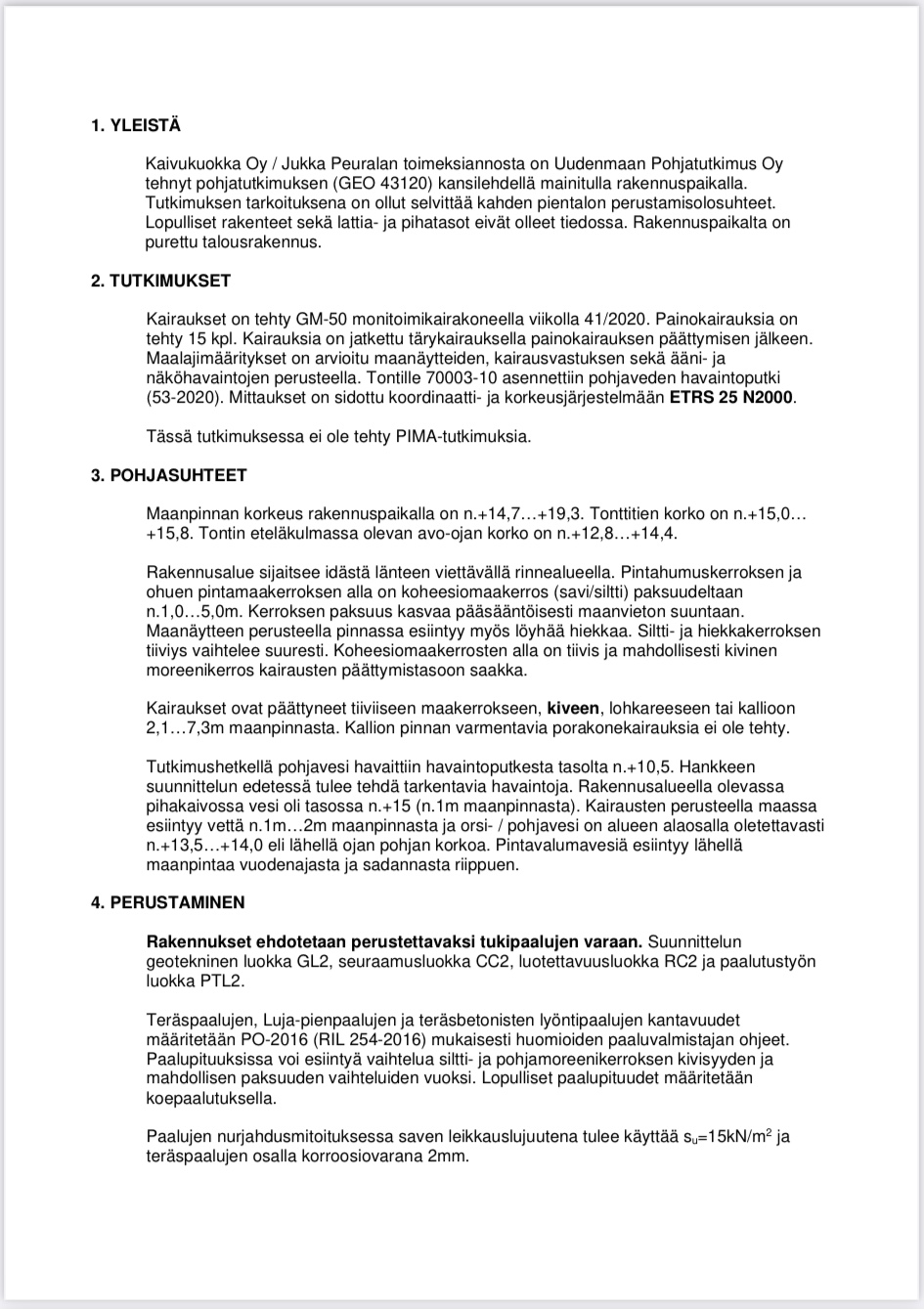 Saat halutessasi koko pohjatutkimuksen kaikkine tietoineen käyttöösi sähköpostitse.