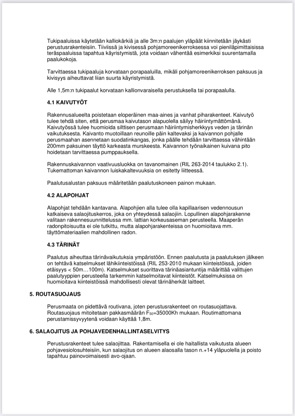 Pohjatutkimus suosittaa perustuksen paaluttamista. Arvioitu kustannus on noin 6000 - 8000 €, joka on samaa suuruusluokkaa, mikäli rakennus perustettaisiin massanvaihdolla. Arvioitu paalutussyvyys noin 6 - 8 metriä / paalu, paalumäärä ja kärjet perustuen perustussuunnittelijan laskelmiin ja paalutuskarttoihin.